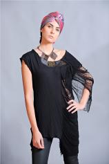 Imbinarea armonioasa a zalelor de culoare negru metalizat impletite manual cu margelele tubulare negre si aurii, creeaza o bijuterie urbana si moderna. Insertiile transparente sunt accentele chic ale acestui colier, lasand impresia ca piesa este suspendata pe decolteul purtatoarei, fapt care confera bijuteriei un aer misterios si original.