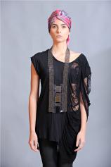 Combinatia interesanta a zalelor impletite manual dupa modele inspirate de armurile medievale, cu margele tubulare lungi argintii, aurii si negre formeaza o bijuterie ce evoca traditiile vechilor indieni americani. Insertiile transparente sunt accentele chic ale acestui colier, lasand impresia ca piesa pluteste.
