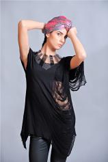 Imbinarea armonioasa a zalelor de culoare negru metalizat impletite manual cu margelele tubulare negre, creeaza o bijuterie indrazneata si moderna. Insertiile transparente sunt accentele chic ale acestui colier, lasand impresia ca piesa este suspendata pe decolteul purtatoarei. Este o bijuterie originala si rafinata.